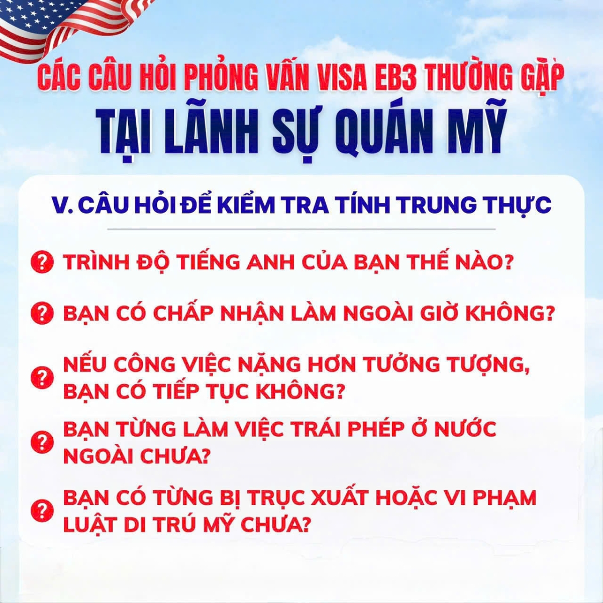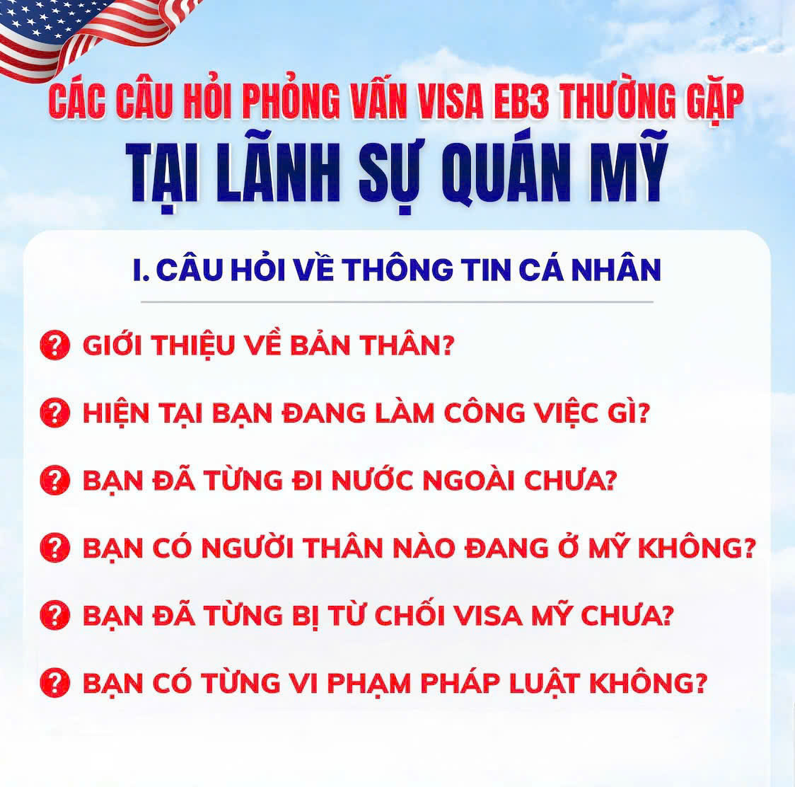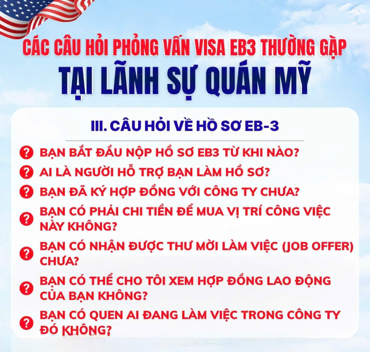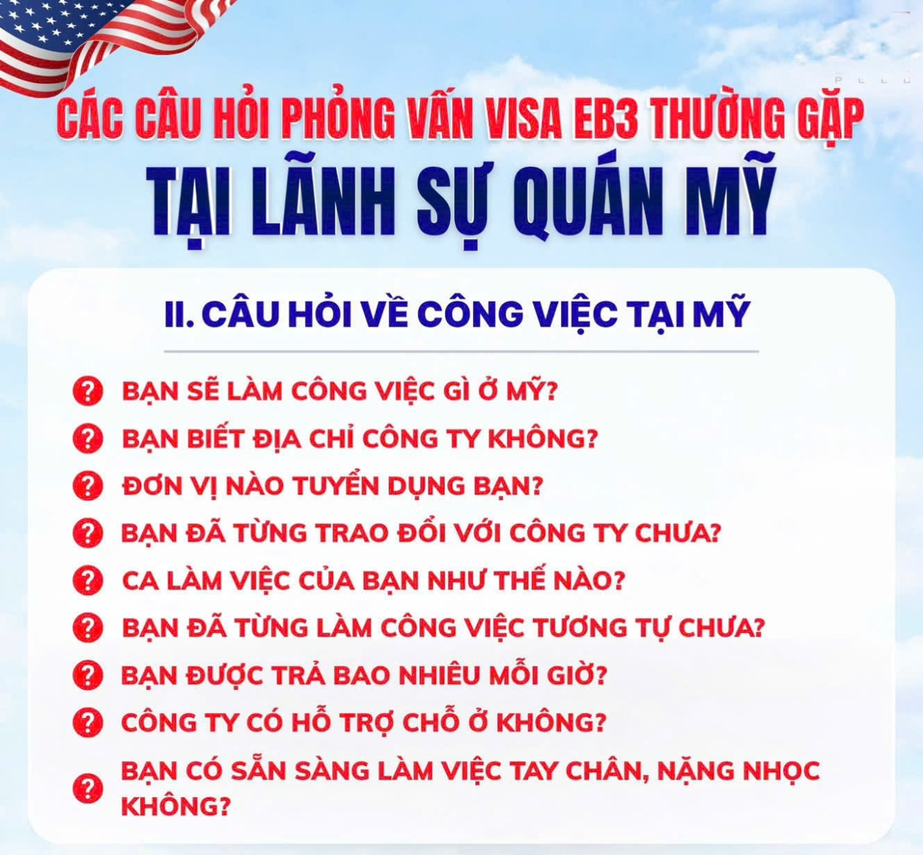 >> Hãy xem và lưu lại bộ ảnh các câu hỏi EB-3 dưới đây để ôn tập thật tốt! Share bạn bè, người thân đang chuẩn bị phỏng vấn hoặc chia sẻ ngay bài viết này để giúp họ tự tin hơn!